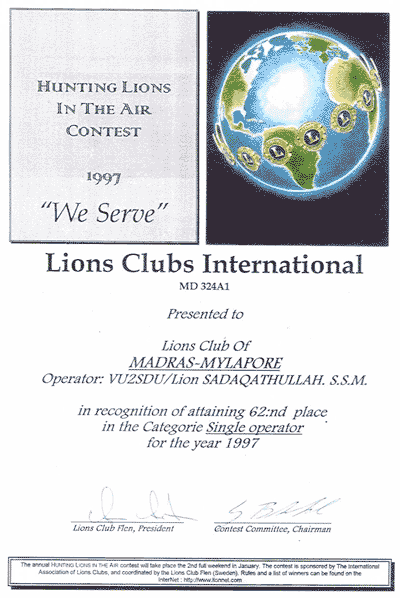The following is the 'Hunting Lions In The Air Contest participant certificate' - issued by the Lions club of Flen, Sweden to promote this contest.