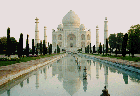 Taj Mahal is regarded as one of the seven wonders of the world, and some Western historians have noted that its architectural beauty has never been surpassed. The Taj is the most beautiful monument built by the Mughals. Taj Mahal is built entirely of white marble. Its stunning architectural beauty is beyond adequate description, particularly at dawn and sunset. The Taj seems to glow in the light of the full moon. On a foggy morning, the visitors experience the Taj as if suspended when viewed from across the Jamuna river.